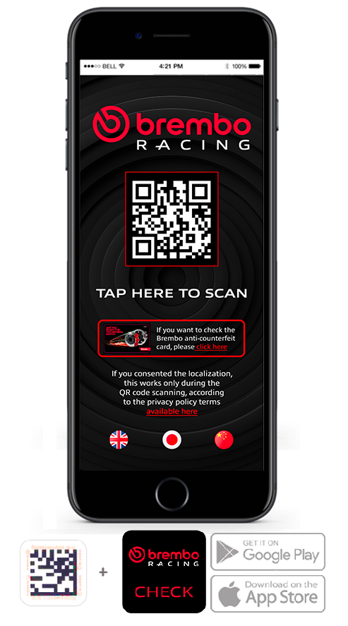 Brembo, qui s’est toujours portée garante de la sécurité et de la fiabilité de ses composants, a développé l’application Brembo Check, qui permet de certifier rapidement et facilement l’authenticité de ses produits.